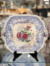 Square Purple Floral Transferware Cake Plate
